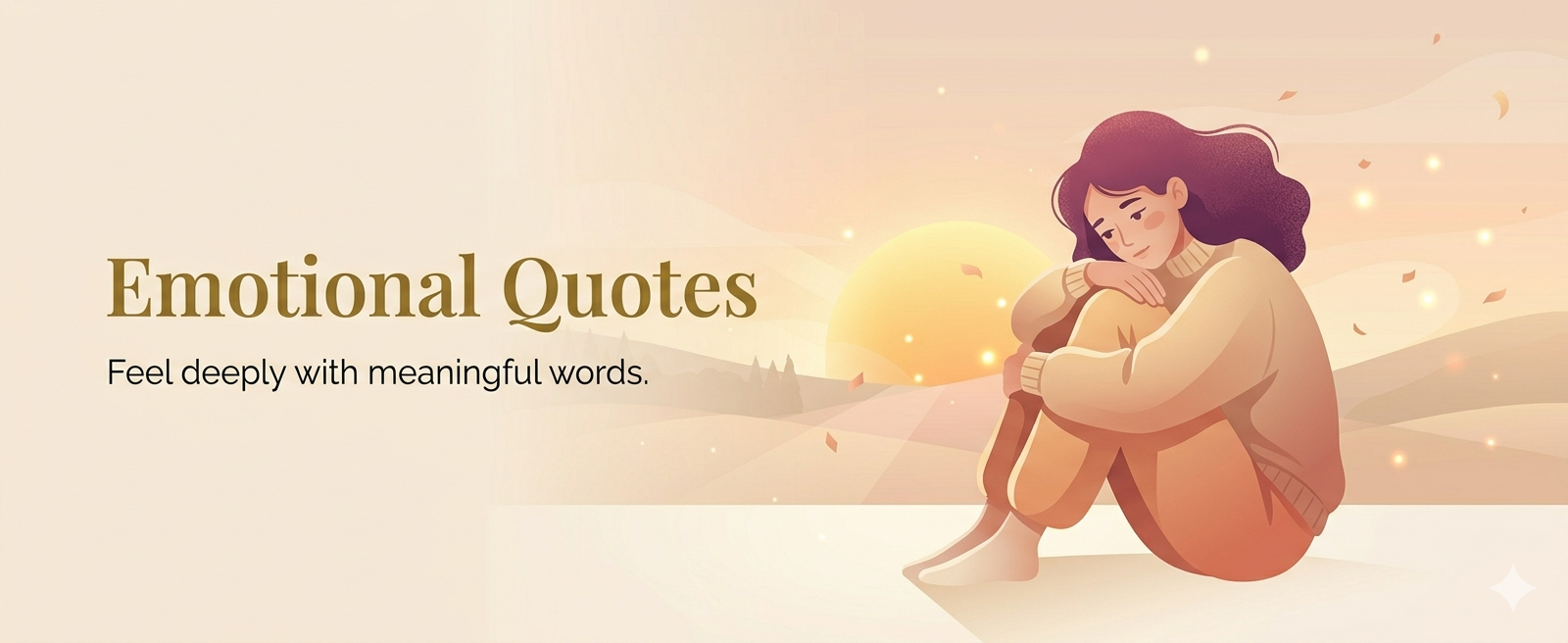 Some feelings are too deep to explain, yet a few words can describe them perfectly. Our emotional quotes are designed to connect with your heart, express unspoken thoughts, and bring comfort during difficult moments. Whether it’s love, heartbreak, loneliness, or healing—these words help you feel understood in ways nothing else can.