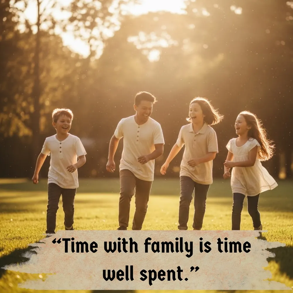 Family time quotes value simple moments. Love grows when we share time together. Quotes about family love teach presence.