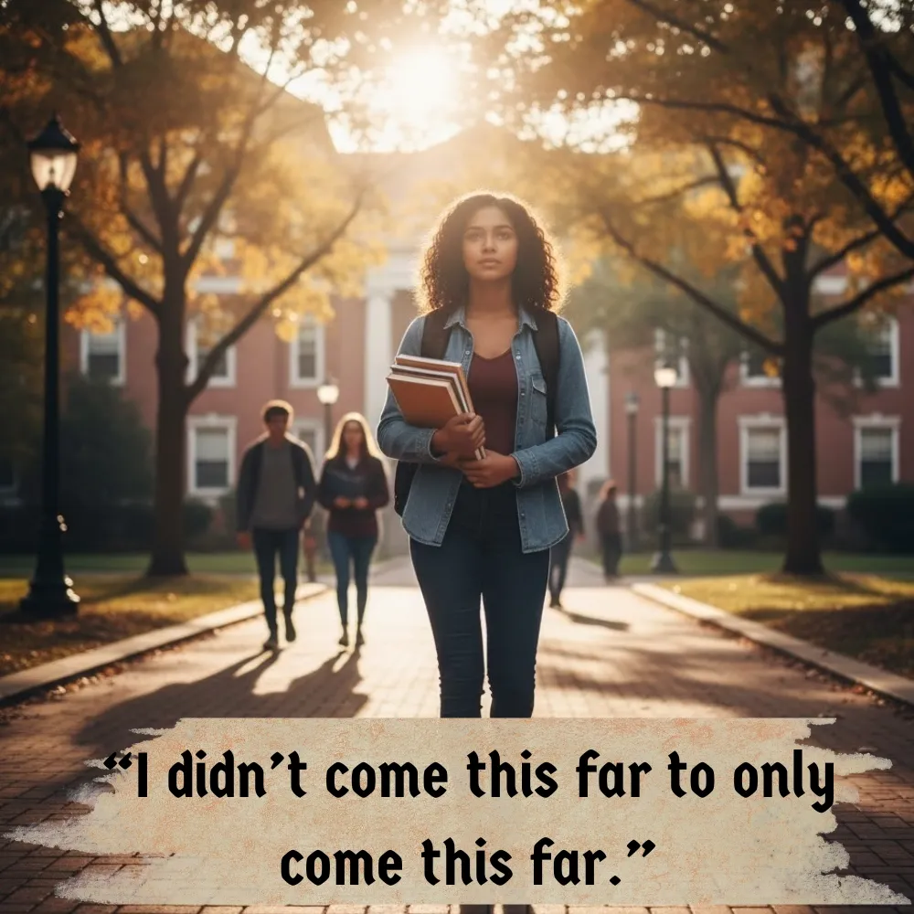 “I didn’t come this far to only come this far.” Strong and inspiring for students looking ahead.