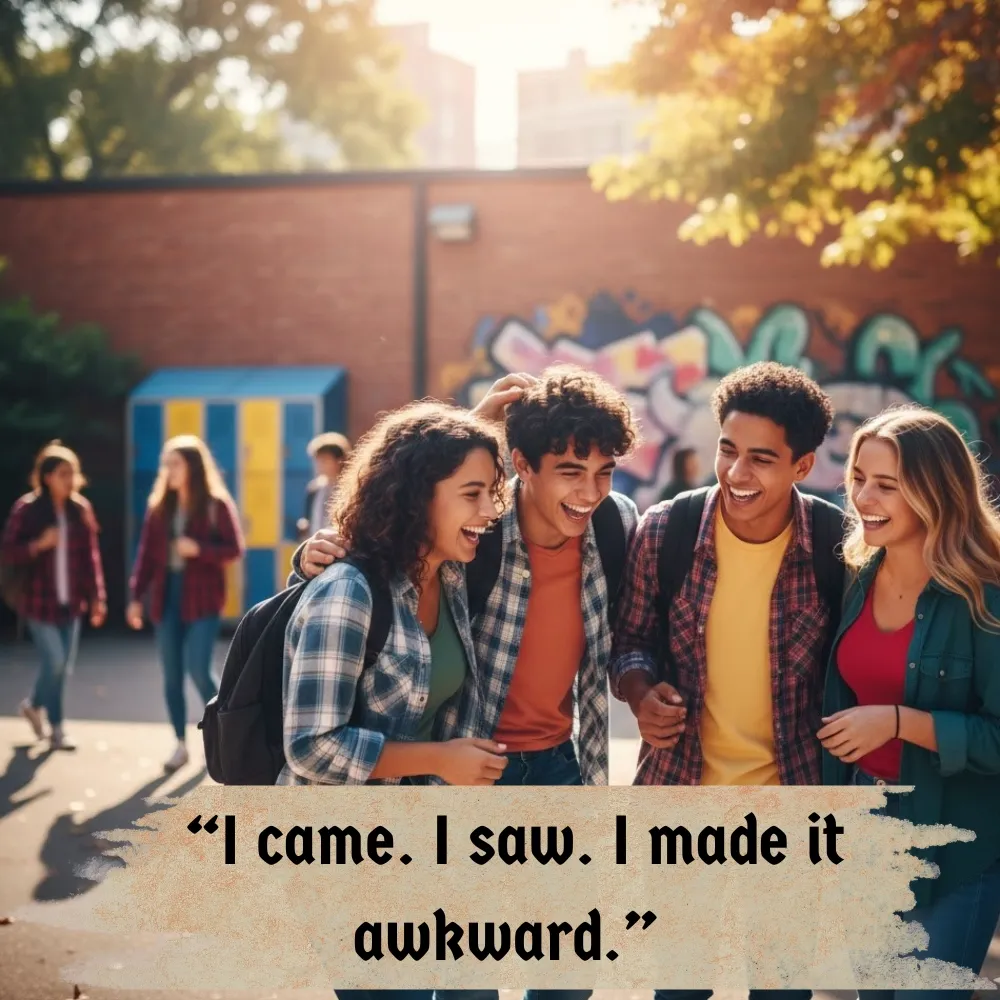 Quotes like “I can’t believe they let me graduate” or “I came, I saw, I made it awkward” are among the best funny senior quotes.